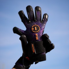 Goalkeeper gloves with Hybrid Roll-Negative cut and a palm made with our 100% natural German Latex Quartz Grip.
